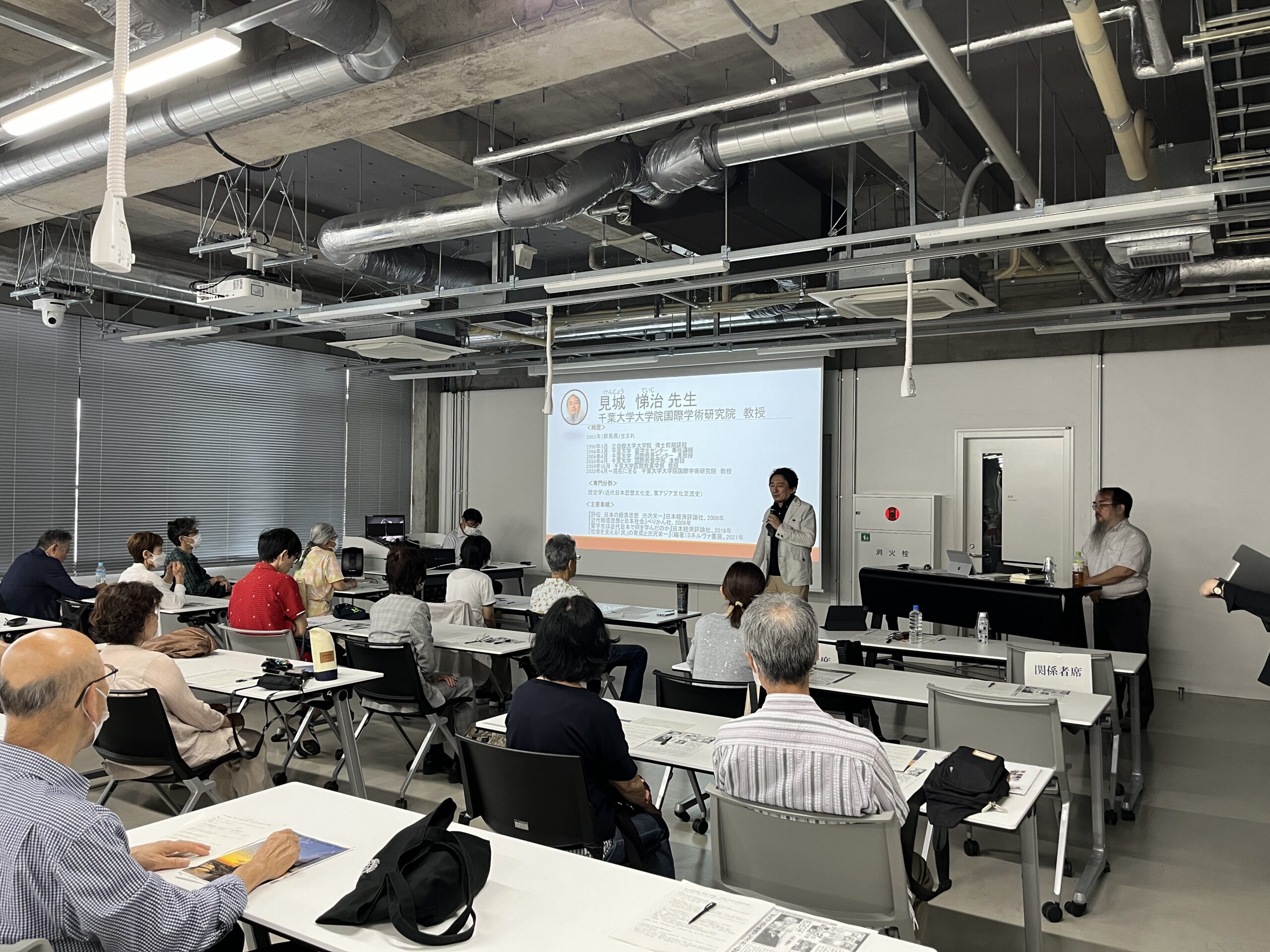 講師は、「渋沢栄一」研究の第一人者、見城悌治 千葉大学国際学術研究院 教授が務め、渋沢栄一の波乱万丈の人生や、「資本主義の父」といわれる所以、また、あまり知られていない、日本における教育・福祉等の公共事業への貢献など、90分では語りつくせないほど濃密な内容で、参加者の多くも熱心にメモを取られていました。
